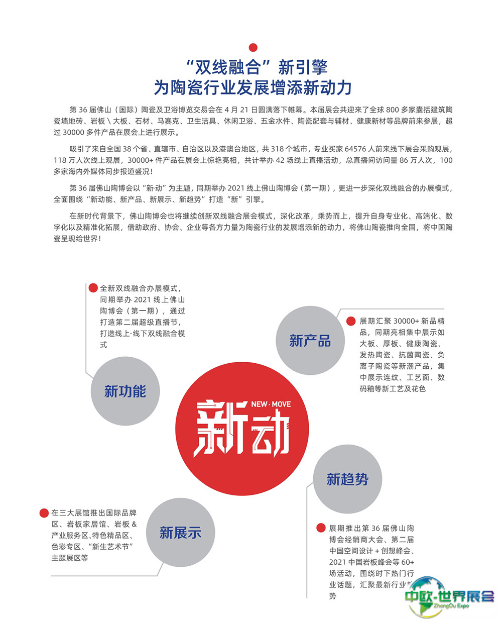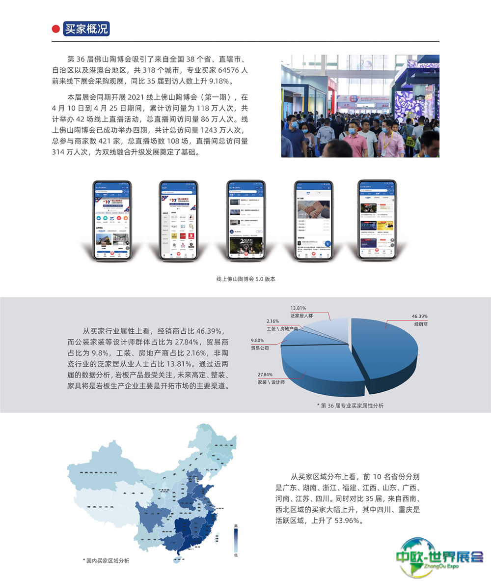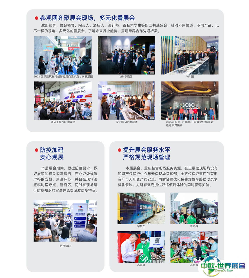 佛山国际陶瓷及卫浴展-佛山陶博会(CERAMBATH)落地在佛山,实现固展和临时展的双线融合,依托石湾陶谷小镇、南庄建陶小镇两大产业链资源融合发展。深化展陈形象,精选品质展商。云集国内外瓷砖卫浴大牌,展示工程类产品、瓷砖、卫浴、石材、陶瓷机械、原材料及色釉料等。