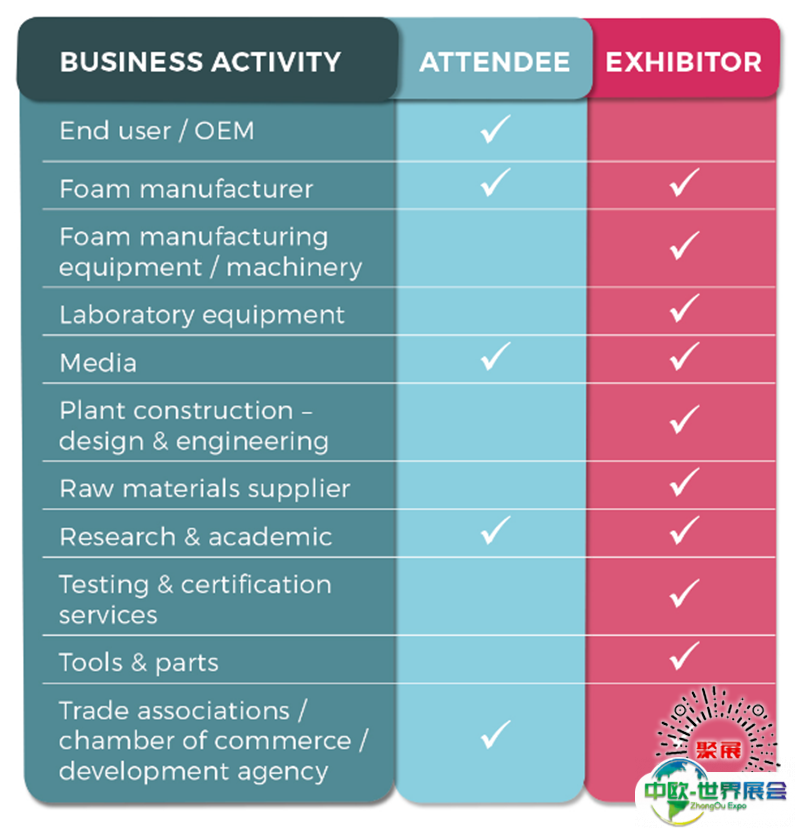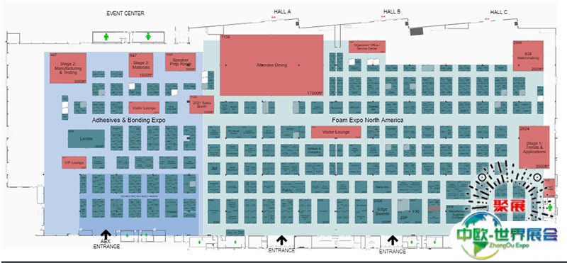 中欧国际多次组织了部分优质企业参展!美国诺维聚氨酯发泡材料展览会(Foam Expo North America)上届展会总面积18000平方米,参展企业366家均来自中国、南非、迪拜、巴西、土耳其、西班牙、俄罗斯、日本、新加坡、印尼等,参展人数15900人。