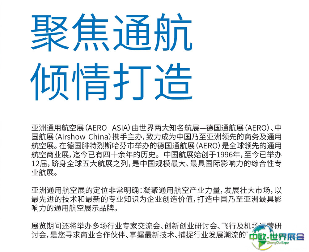 主办单位:德国通航展(AERO)、中国航展(Airshow China)