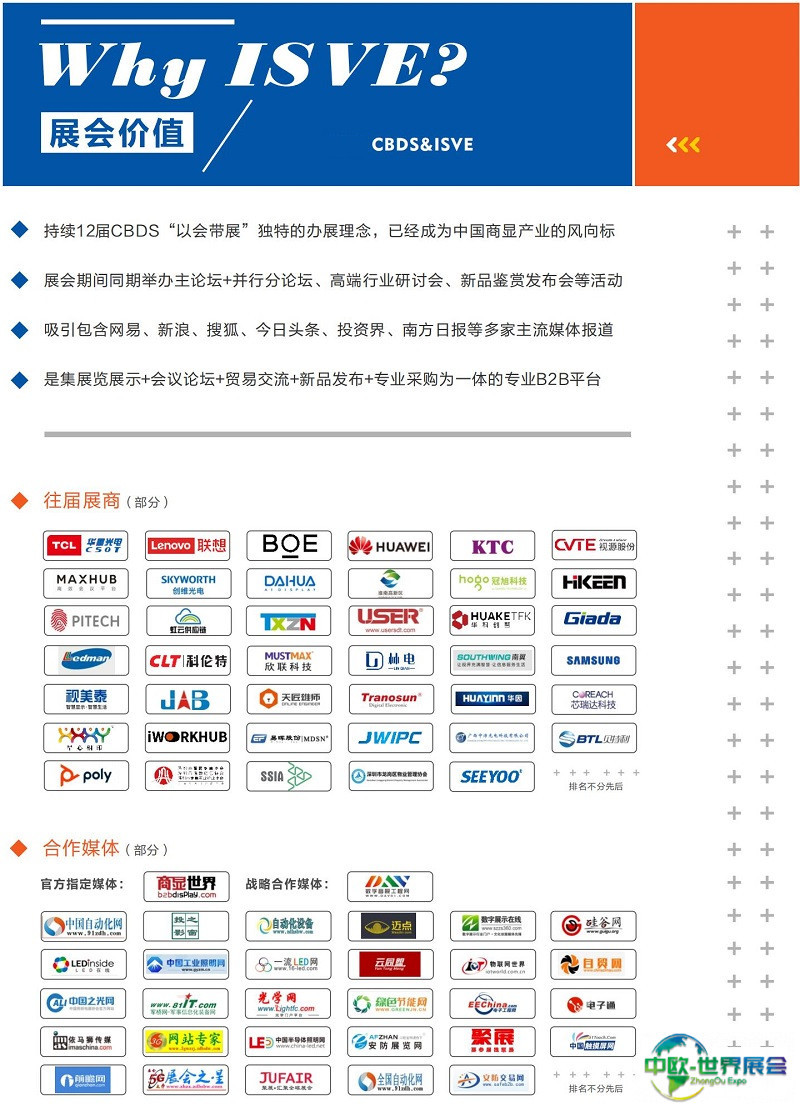 中国(国际)深圳商用显示系统产业领袖峰会(CBDS)由中国商用显示系统产业联盟、深圳市商用显示系统产业促进会主办。同期举办深圳国际智慧显示系统产业应用博览会(ISVE)。作为每年一届的中国商显行业盛事,展会将围绕“数字驱动,商显无界”这一主题,为世界展示商显智造企业创新技术产品及成果。