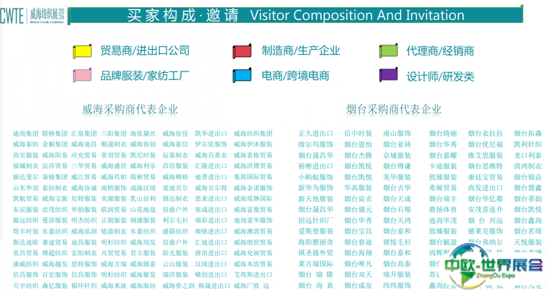 威海国际纺织服装供应链博览会(CWTE)坚持以“参展效果” 为宗旨,以“参展满意”为标准,打造烟威地区精准对接的纺织服装采购交易平台。