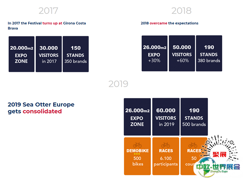 作为世界知名自行车展之一。西班牙郝罗纳自行车展览会(Sea Otter Europe)起源和灵感来自于Sea Otter Classic,这是地球上最大的自行车节之一,自1991年以来每年在Laguna Seca(加利福尼亚州)举办,并且从未停止过成长和发展。