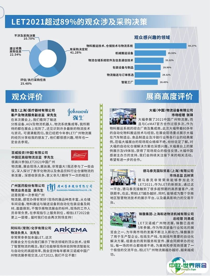 广州国际物流装备与技术展览会(LETCHINA)是华南地区最具影响力的物流装备行业展览会。作为专业的物流展,我们始终紧扣市场前沿,秉持科技、创新及服务的先进理念,立足中国华南市场,为客户提供专业、高效的展示平台。