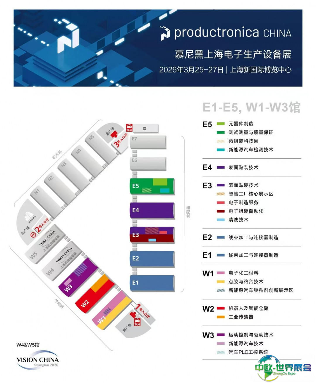 展会将继续在E1-E5及W1-W3馆举办。各展馆依据展品类别与应用领域进行细致划分,布局科学合理,助力展商精准展示核心优势,方便观众高效锁定目标产品。