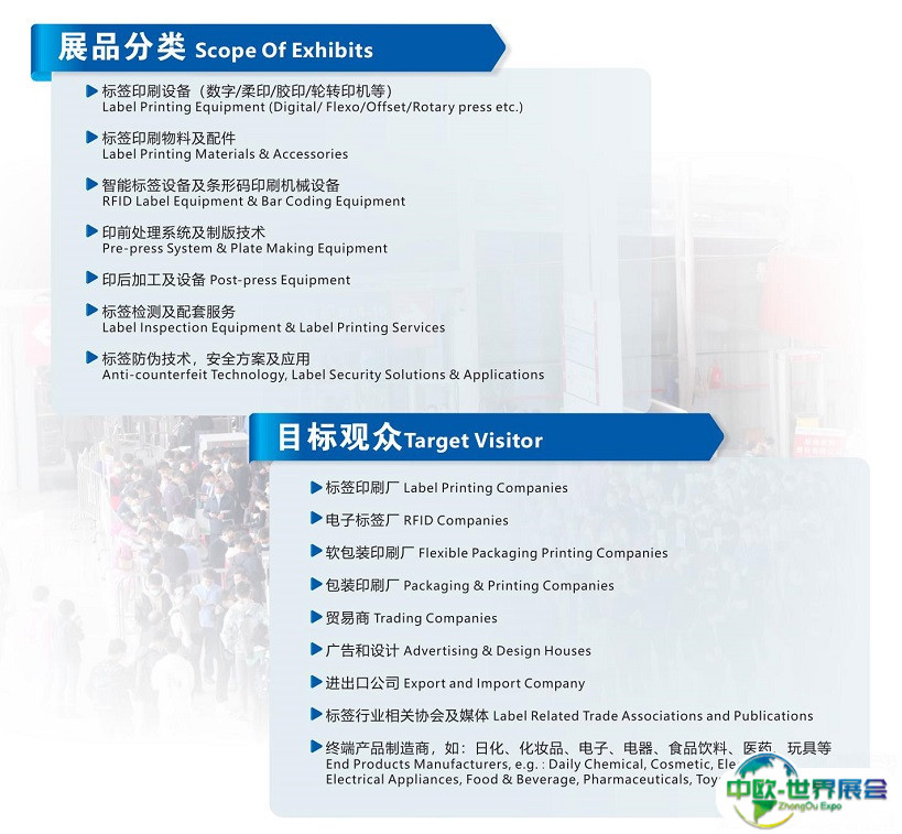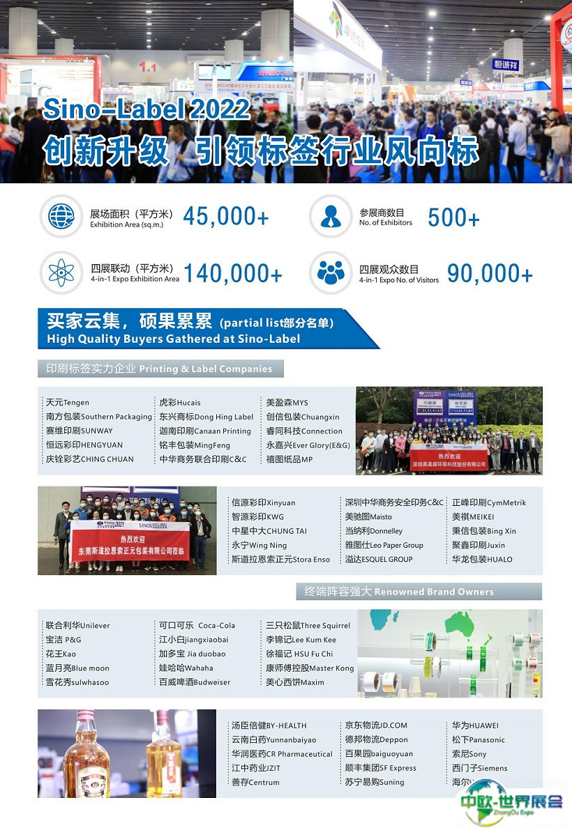 中国国际标签展-广州标签印刷技术展(SINO-LABEL)立足华南,由中国辐射至亚太地区及全球专业买家,让展商更能有效开拓中国以至海外国际市场,加强与目标买家接洽的机会,致力打造中国标签行业具有影响力的专业展览会。