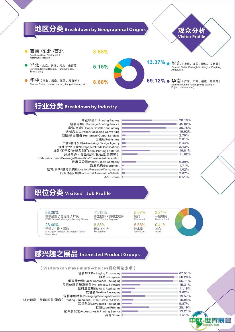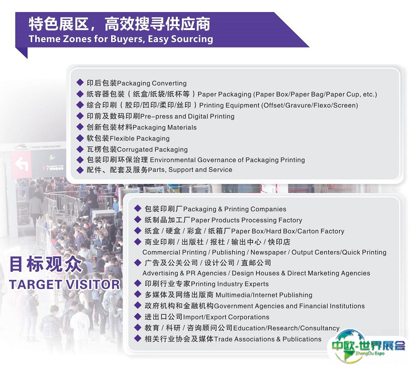 本次展览覆盖印刷、标签、包装、包装制品全产业链,从标签印刷设备及材料、包装印刷及印后设备,到包装设备及解决方案、包装材料及制品等。为包装印刷厂、彩盒厂、标签厂、软包厂、纸制品加工厂、电子标签厂、商业/设计服务、食品/饮料/日化/医药/化妆品/电子电器等终端产品制造商、电商物流、进出口/贸易商等企业寻求具有成本效益和稳定可靠的生产解决方案提供了专业高效的交流平台。