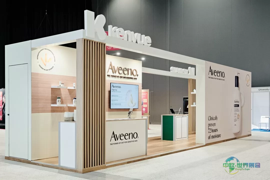 Aveeno零售空间采用简洁开放式布局,四面呈现清晰品牌标识。木纹饰面与中性色调框定产品陈列与体验柜台,上空结构界定空间范围同时保持视觉通透。数字屏幕辅助产品说明,货架系统确保商品有序可视,设计支持稳定客流与直接客户互动。