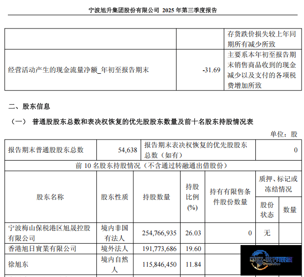 截至2025年第三季度末,旭晟控股、旭日实业与徐旭东分别为旭升集团的前三大股东,持股比例依次为26.03%、19.60%和11.84%。
