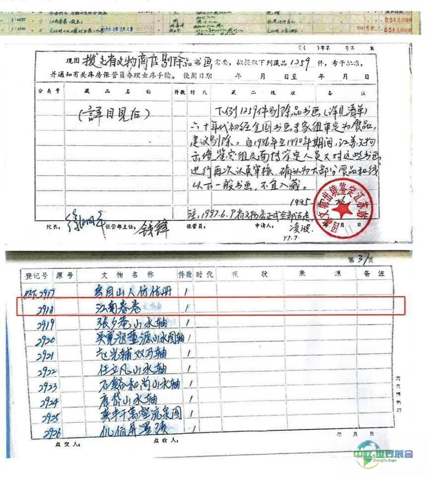 1997年5月8日,被认定为仿品的《江南春》图卷退出南京博物院馆藏记录(受访者供图)