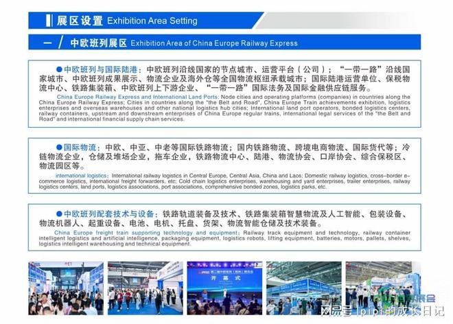 集中展示开行中欧班列的城市、物流枢纽、班列运营单位、第三方物流及货代公司、电商物流企业及物流园区等所采用的配套技术与设备,重点涵盖智慧物流技术、冷链仓储技术以及包装、运输、存储等相关设备。