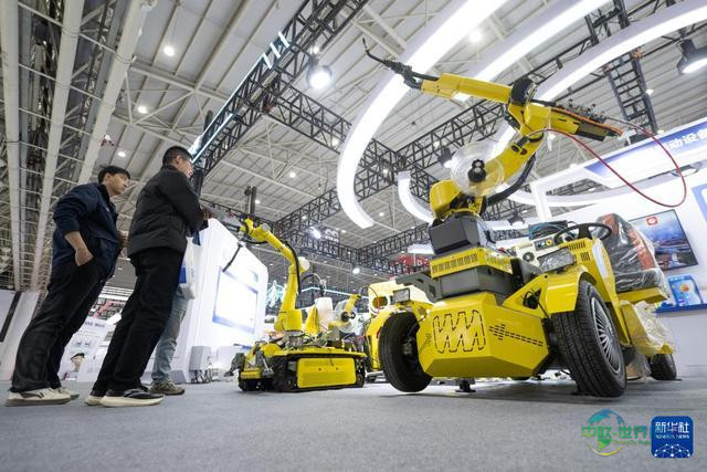 12月12日,参观者在2025武汉国际工业设计博览会上观看一款自行走全场景大件焊接机器人。