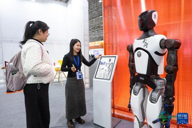 12月12日,参观者在2025武汉国际工业设计博览会上观看“天问”2号人形机器人。