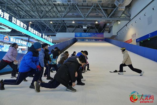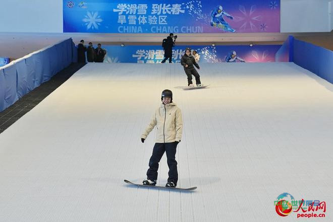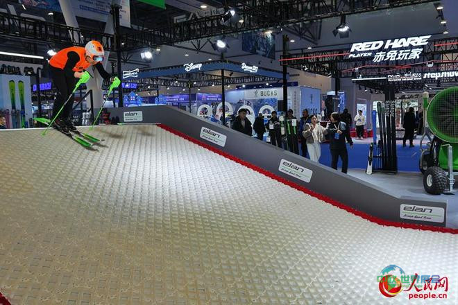 滑雪爱好者在雪博会上体验滑旱雪。人民网记者 李洋摄