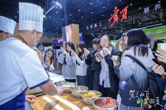 为提升参观体验,展区特别安排了“闻香识酒”、“热红酒工坊”、“风物市集”等互动项目,让访客能够沉浸式感受产区的风土特色。红玛瑙等枸杞企业呈现了从种植到精深加工的全产业链产品,怀远夜市的牛肉饼、烤蛋、辣条等风味小吃现场制作,展现了“葡萄酒配美食”的独特地方风情。同时,非遗传承人进行的葫芦烙画、绳结编织演示,以及漫葡小镇演艺团队献上的特色胸鼓舞与情景互动,显著丰富了展区的文化底蕴与可看性。