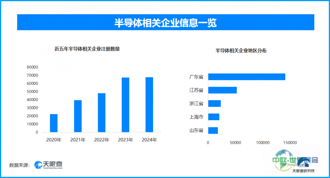 从地域分布分析,广东省的半导体相关企业数量最多,超过14.1万家,占全国总量的35.38%。江苏省紧随其后,拥有超过5.2万家相关企业。
