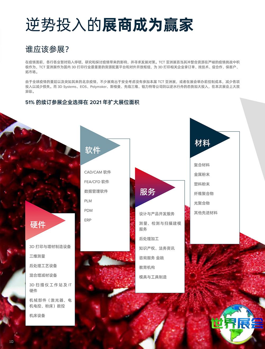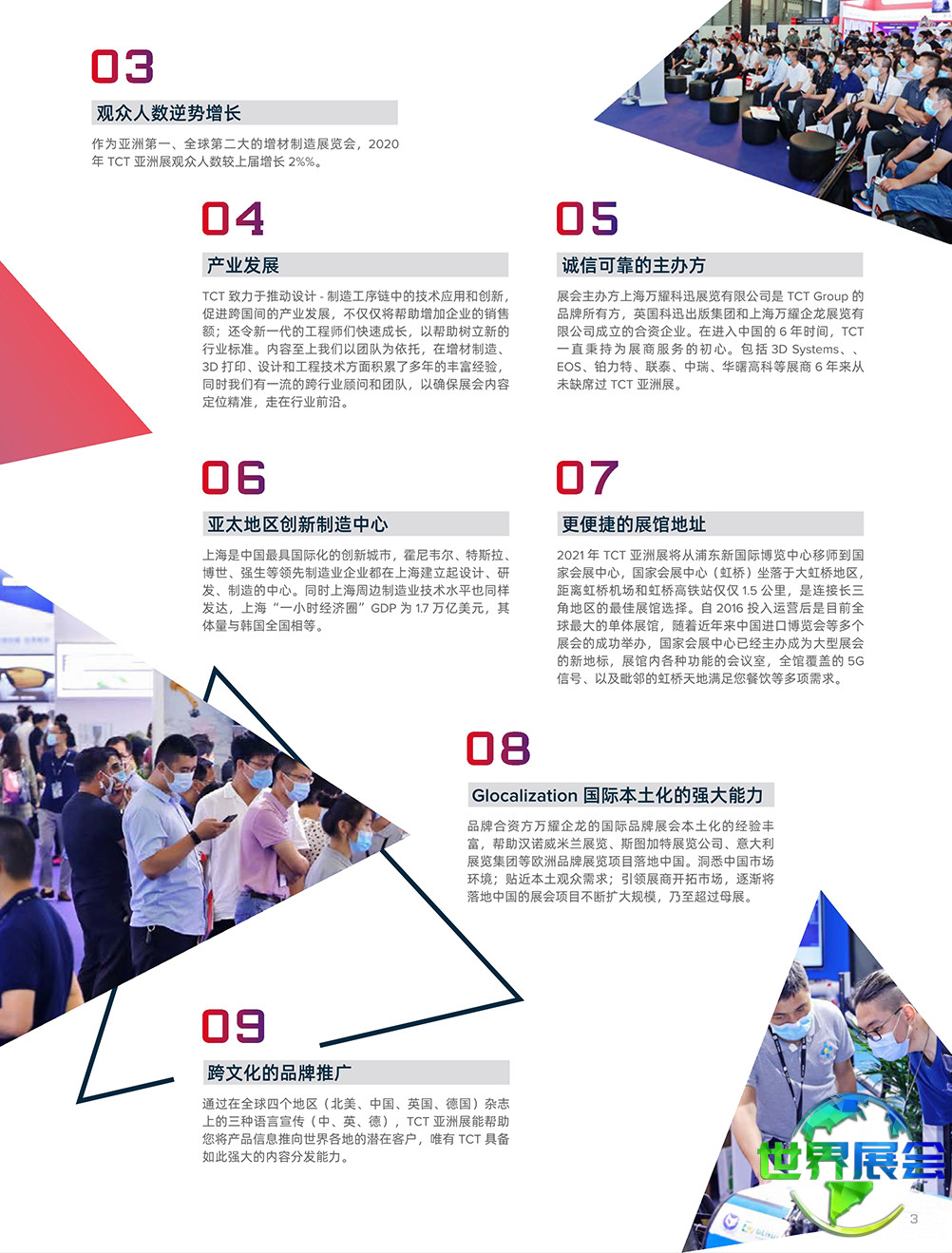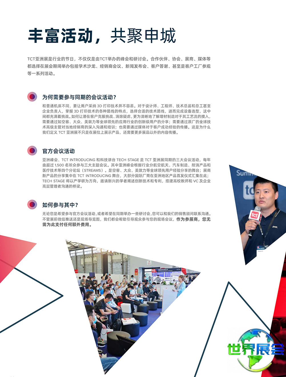 亚洲3D打印与增材制造博览会(TCT ASIA)品牌始于英国,于2015年引入中国。该展会拥有独特优势,汇聚了海内外行业精英与尖端科技。在TCT亚洲展上,3D打印及增材制造领域的从业者齐聚,共同寻求创新方案,提供融合本土与国际视角的全面洞察,助力快速把握市场技术动态,预见未来发展走向,并借此平台进行产品采购与方案探索。