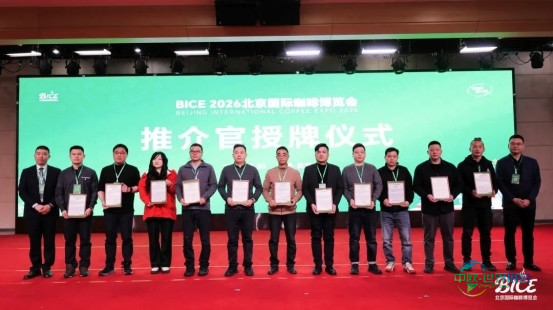 为扩大展会声量、凝聚行业向心力,现场隆重举行了BICE 2026北京国际咖啡产业博览会“推介官”授牌仪式。北京咖啡行业协会会长与企阳国际展览集团董事长高原共同为展会推介官颁发证书,正式委任其承担展会“推介官”的职责。这些来自咖啡领域的资深专家与学者将作为“咖啡博览会的使者”,凭借其专业影响力与行业号召力,持续助力提升展会的专业口碑与社会关注度。