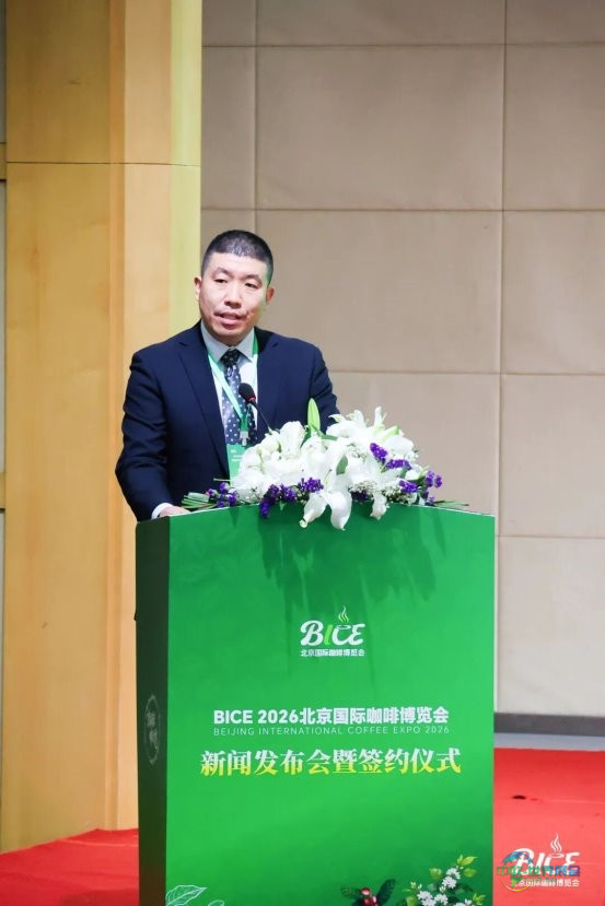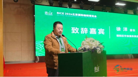 朝阳区饮食服务旅店行业协会会长徐洋首先发表致辞。他指出,咖啡产业是衔接文化与消费的关键桥梁,近年来发展势头迅猛。这一欣欣向荣的局面,得益于产业链各环节的紧密协作与持续创新。在此背景下,举办BICE 2026北京国际咖啡博览会正逢其时。这不仅是一个展示产品的平台,更是一次行业智慧的交流、一个深化协作的战略机遇。协会将全力支持博览会,与业界各方一道,共建开放、融合、创新的咖啡产业生态,共同描绘行业发展的崭新画卷。