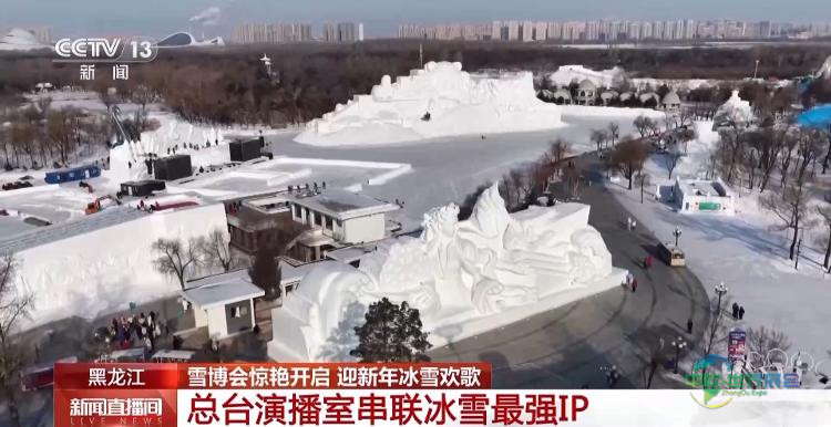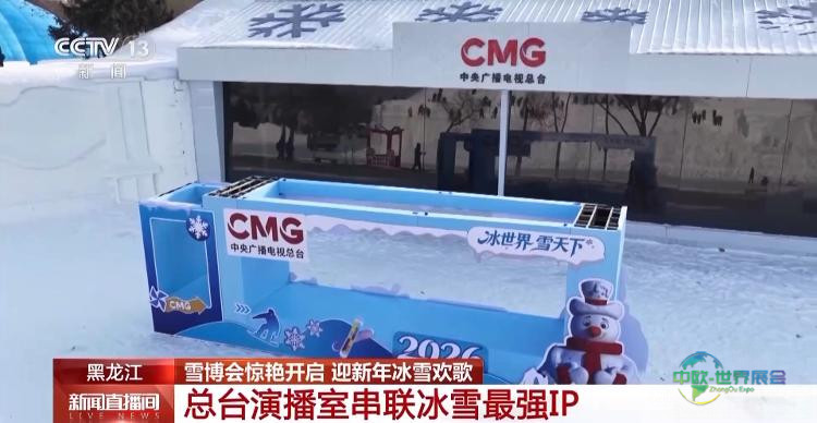 我此刻所处位置是中央广播电视总台的冰雪直播室。这是总台连续第二年在太阳岛雪雕展区内搭建冰雪直播室,它与冰雪大世界内的另一处冰雪直播室彼此呼应,将哈尔滨冬季旅游两大标志性项目——冰雪大世界与雪雕展紧密连接。