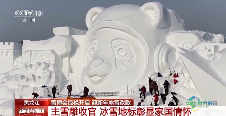 每届太阳岛雪雕展都会创作一座巨型主题雪雕景观,这也是整个展览最引人注目的部分之一。在总台冰雪直播室正前方,便是本届雪雕展的核心作品“为祖国点赞”。